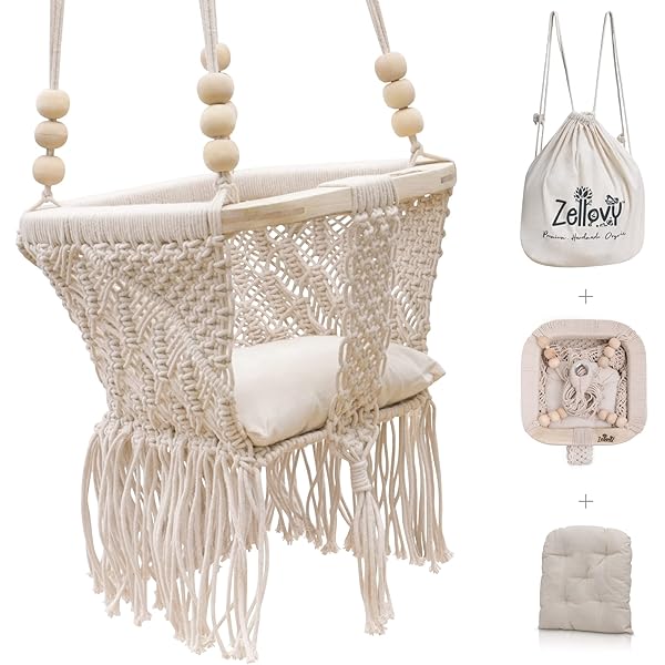 Amazon Com Mass Lumber Macrame Baby Swing Chair With Ceiling Hardwares Boho Baby Swing Outdoor 6 Months Up To 3 Years Infant Swing Outdoor Crochet Baby Swing Seat Toddler Swing Indoor Outside Baby